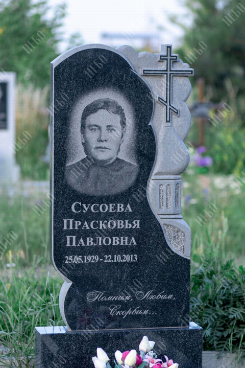 Для изготовления памятника использован гранит карельский габбро-диабаз. Это горная порода, отличающаяся прочностью и повышенной износостойкостью. Карельский габбро-диабаз устойчив к влаге и перепадам температур. Его плотность выше, чем у мрамора, поэтому именно его использовали при воздвижении вековых колонн исторических зданий. Гранитный памятник габбро-диабаз не требует особого ухода, обладает насыщенным черным цветом, что делает внешний вид памятника благородным и лаконичным.