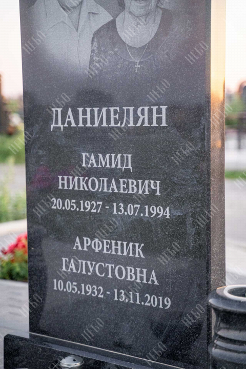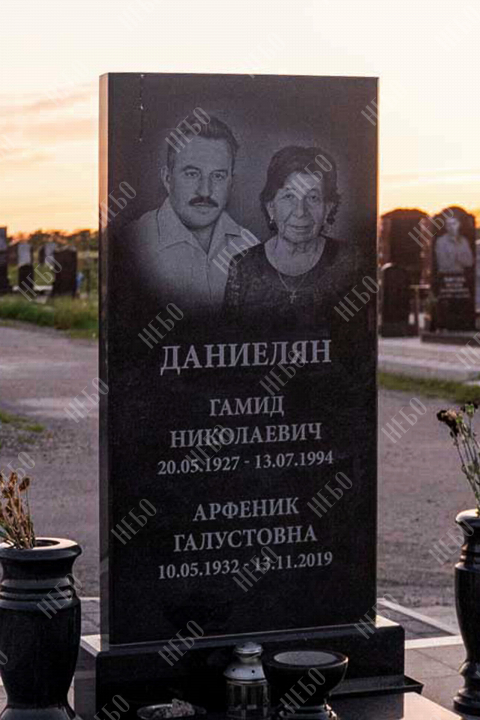 Прямой памятник для родителей выполнен в строгом лаконичном стиле с использованием четких геометрических линий. Черный цвет и прямоугольные формы стелы и надгробия являются классической комбинацией, которая часто используется при изготовлении памятников. Закрытое гранитное надгробие упрощает уход за ритуальным изделием и позволяет расположить памятную надпись, сделав на ней акцент. При изготовлении памятника специалисты тщательно прорабатывают соотношение форм, размеров и нагрузку, чтобы исключить деформации и искажения изделия со временем.